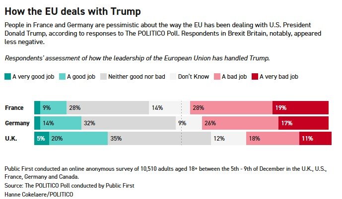 The leaders of the European Union look the worst. In France, only 11% of respondents believe that Brussels handled relations with Trump well, while 47% stated that the European leadership was poor at establishing relations with the White House.