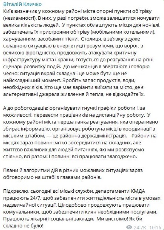 Kyiv Mayor Vitali Klitschko announced the measures, stating that these facilities will be equipped with sleeping quarters and mobile boiler houses, as well as stocked with food and hygiene supplies. The city is developing contingency plans for various scenarios, as the threat of further enemy attacks on critical infrastructure remains high.