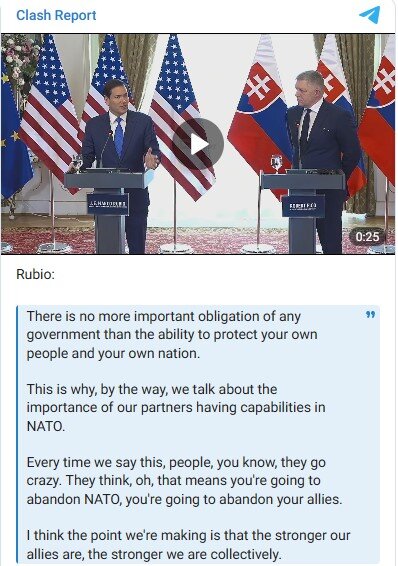 At the same time, Rubio specifically stressed that the demand for allies to become stronger should not be perceived as the US preparing to withdraw from NATO. On the contrary, it is about strengthening collective security.
