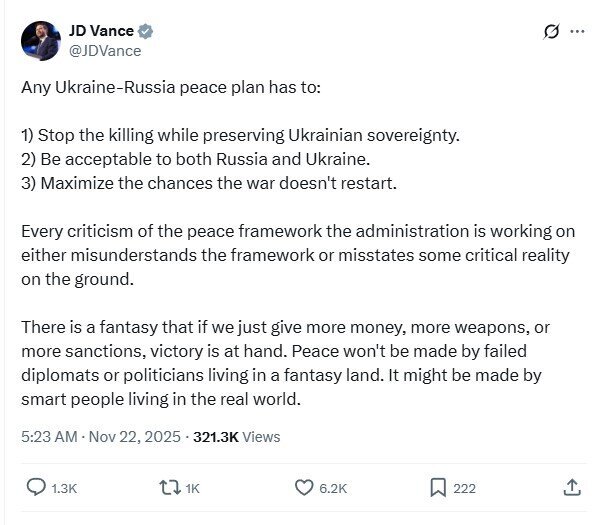 Vance then listed the key points for a peace agreement between Ukraine and Russia: